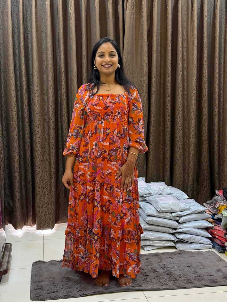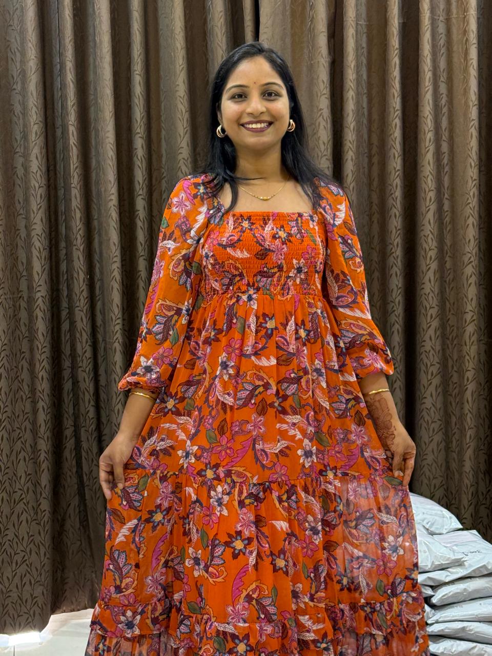 LENGTH - 48, 49, FABRIC - GEORGATE WITH LINING, COLOUR - ORANGE